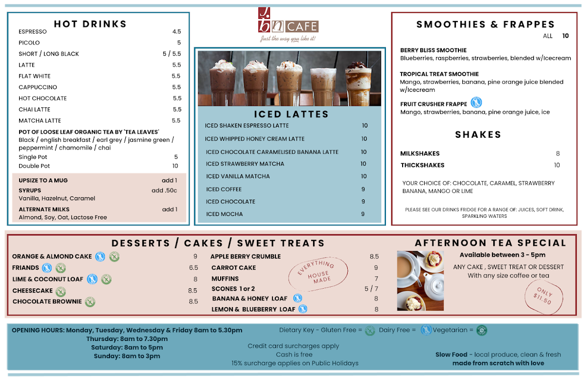 Complete your visit with our array of Hot Drinks, showcasing everything from classic Espressos to creamy Chai Lattes. As many satisfied customers, like Kevin and Dylan, have praised, the atmosphere is vibrant and welcoming, making JBN Cafe a must-visit for coffee lovers and food enthusiasts alike.